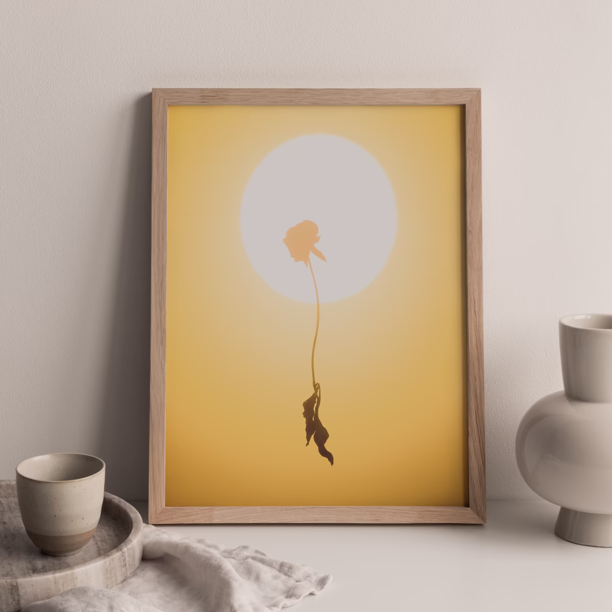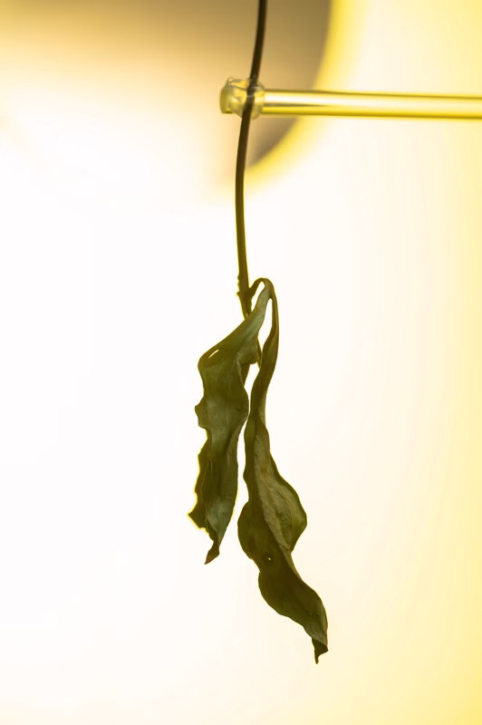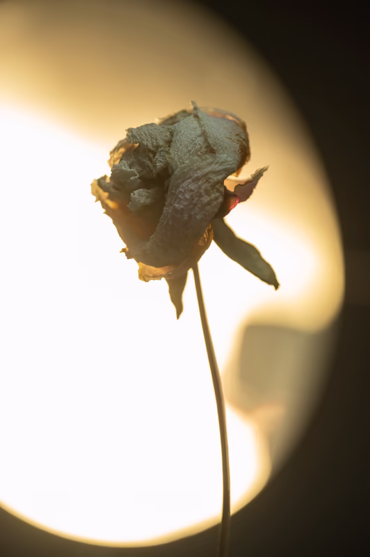 The idea of the image is to communicate the sensation of heat in the language of still life photography. There are only two elements present: a flower wilted by unbearable heat and the hot sun that fills everything with its dominant presence. There remains no room for anything else—everything would be burned down should it dare to enter the frame.